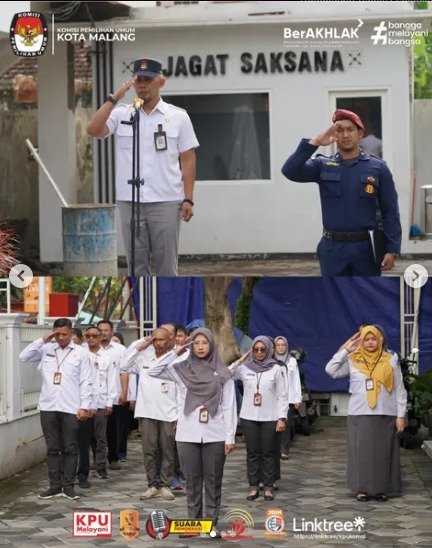 KOTA MALANG, kota-malang.kpu.go.id – KPU Kota Malang melaksanakan apel pagi pada Senin, 24 November 2025, bertempat di halaman Kantor Sekretariat KPU Kota Malang. Apel dipimpin oleh Sekretaris KPU Kota Malang, Bapak Dedy Tri Wahyudi Suryo Putro, dan diikuti oleh seluruh jajaran pegawai sekretariat.