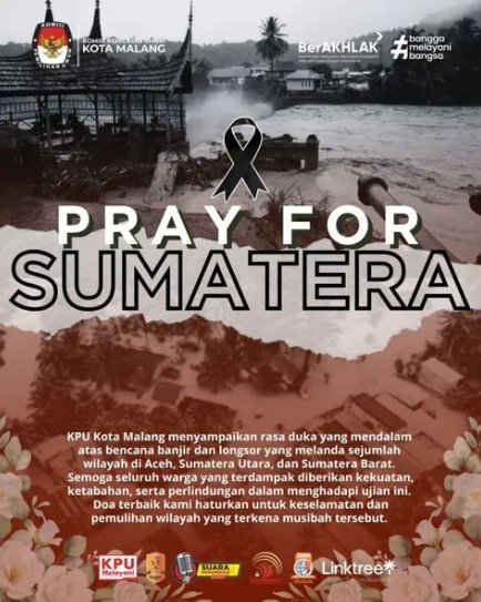 KPU Kota Malang menyampaikan duka cita yang mendalam atas bencana banjir dan longsor yang terjadi di sejumlah wilayah Aceh, Sumatera Utara, dan Sumatera Barat.