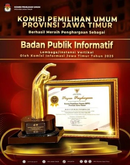 Selamat dan Sukses Komisi Pemilihan Umum Provinsi Jawa Timur (KPU Jatim) atas diraihnya predikat Badan Publik Informatif Lembaga/Instansi Vertikal dari Komisi Informasi Jawa Timur Tahun 2025,