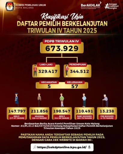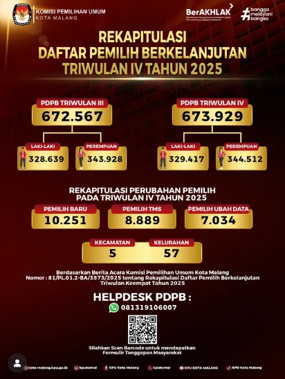 Berdasarkan Surat Keputusan Komisi Pemilihan Umum Kota Malang Nomor 81/PL.01.2-BA/3573/2025 tenteng rekapitulasi daftar pemilih berkelanjutan triwulan keempat tahun 2025