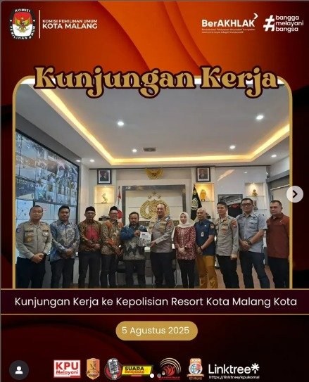 Sementara itu, Kapolres Malang Kota, Kombes Pol Nanang Haryono, SH, SIK, MSi., menyambut baik kunjungan jajaran KPU Kota Malang. Beliau menegaskan komitmen Polres Malang Kota untuk terus bersinergi dan mendukung penyelenggaraan Pemilu dan Pemilihan di masa mendatang, termasuk menjaga keamanan dan ketertiban masyarakat di seluruh tahapan Pemilu dan Pemilihan.