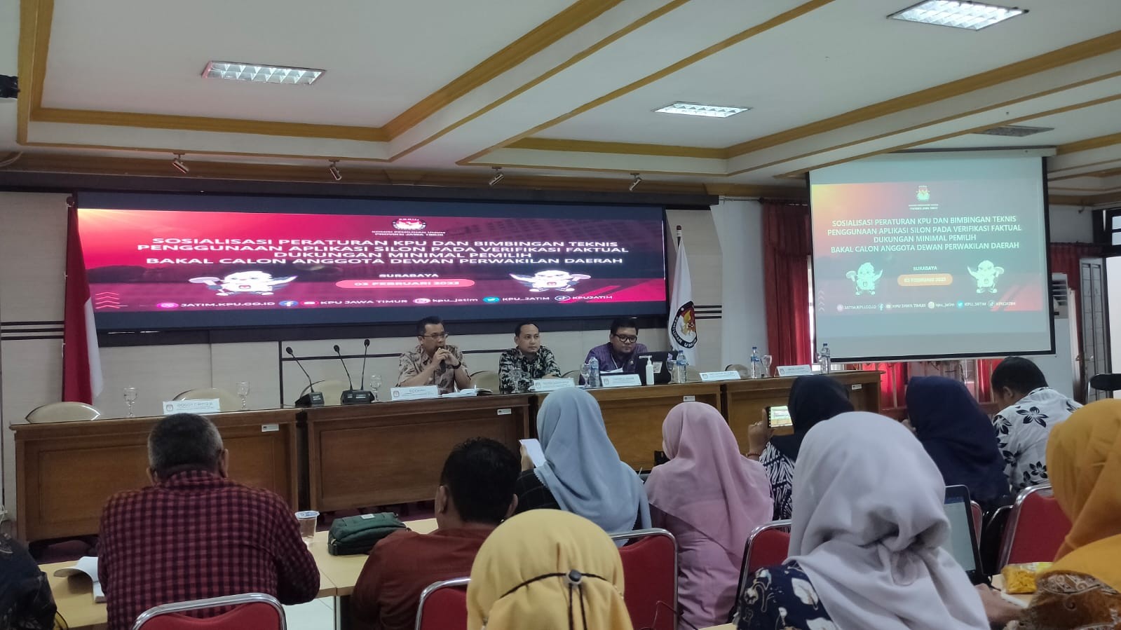 Surabaya, KPU Kota Malang- Masih dalam rangkaian kegiatan Rekapitulasi Verifikasi Administrasi Perbaikan Kesatu Dukungan Pemilih Bakal Calon DPD, pelaksanaan bimtek penggunaan aplikasi Silon pada verifikasi faktual yang diselenggarakan KPU Provinsi Jawa Timur, di hari kedua Jum’at (3/02/2023) bertempat di Aula Pertemuan KPU Provinsi Jawa Timur Jalan Tenggilis Surabaya.