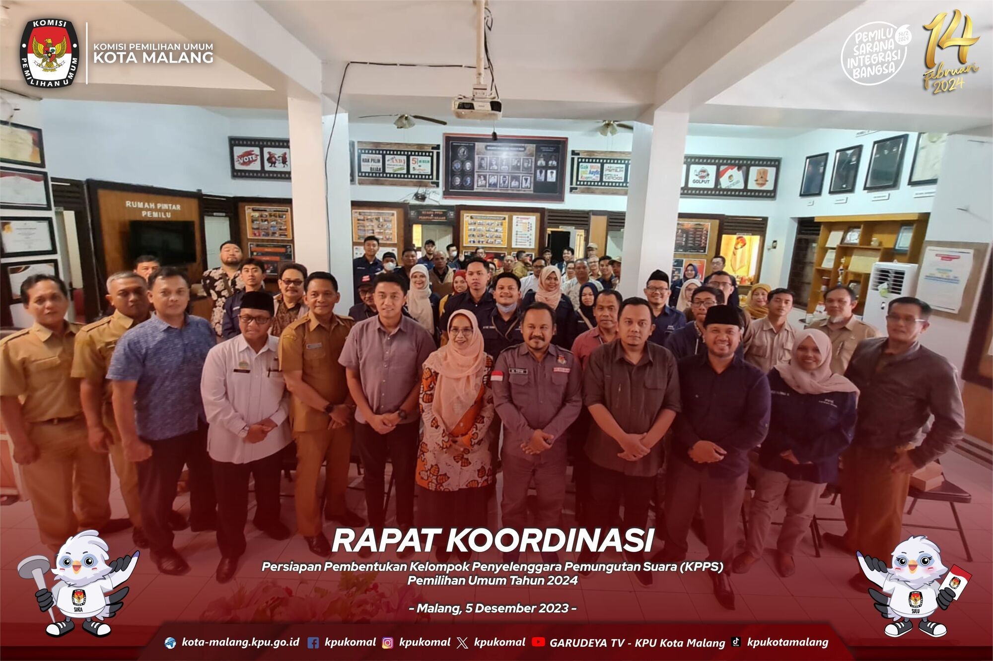 KOTA MALANG, kota-malang.kpu.go.id - Komisi Pemilihan Umum Kota Malang menggelar Rapat Koordinasi Persiapan Pembentukan Kelompok Penyelenggara Pemungutan Suara (KPPS). Rakor ini digelar dalam rangka persiapan tahapan rekrutimen KPPS Pemilu 2024 yang akan dimulai tanggal 11 Desember 2023 mendatang.