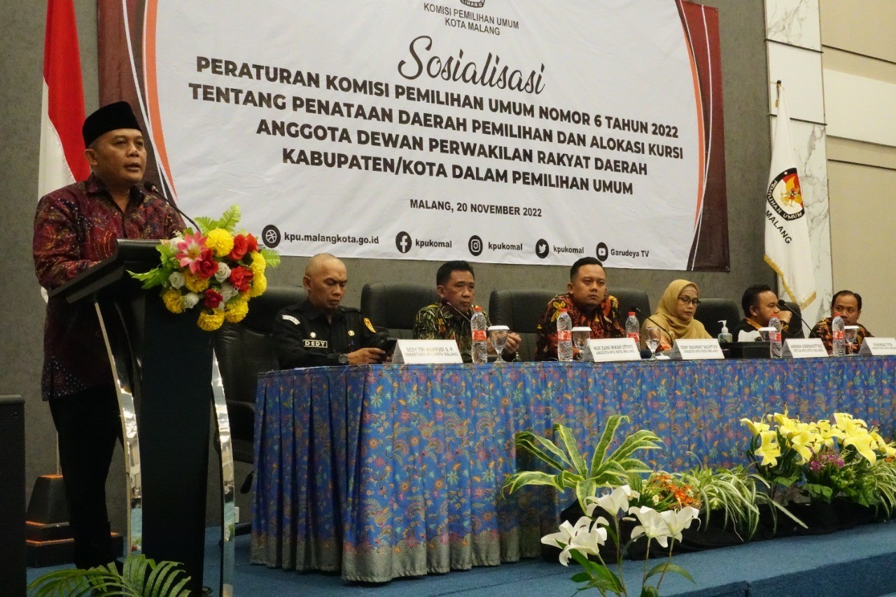 KPU Kota Malang gelar Sosialisasi Peraturan Komisi Pemilihan Umum No.6 Tahun 2022 Tentang Penataan Daerah Pemilihan dan Alokasi kursi Anggota DPRD Kab/Kota dalam Pemilu