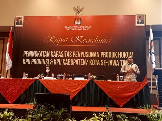 kpu.malang.go.id. Kamis (24/11/2022) Komisi Pemilihan Umum Provinsi Jawa Timur mengadakan Rapat Koordinasi Peningkatan Kapasitas Penyusunan Produk Hukum KPU Provinsi dan KPU Kabupaten/Kota se Jawa Timur yang dilaksanakan pada Kamis tanggal 24 November 2022. Kegiatan Rakor dilaksanakan di Ijen Suite Kota Malang yang diikuti oleh Divisi Hukum dan Pengawasan serta Kepala Subbagian (Kasubbag) Hukum dan SDM KPU di 38 Kabupaten/Kota se-Jawa Timur. Hadir pula dalam kesempatan tersebut perwakilan Bawaslu Jatim.