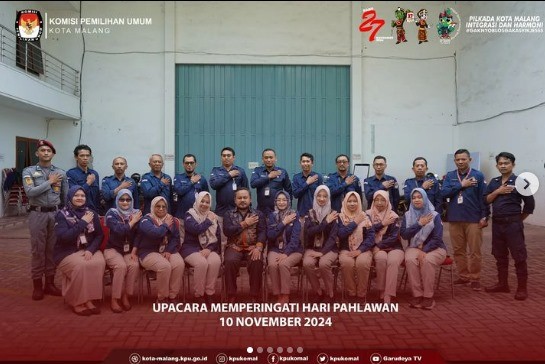 KPU Kota Malang melaksanakan Upacara memperingati Hari Pahlawan Minggu, 10 November 2024 di Gudang Logistik KPU Kota Malang.
