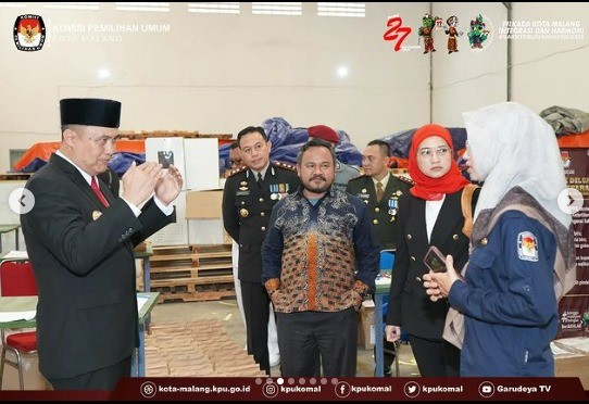 KPU Kota Malang menerima kunjungan dari Forkopimda Kota Malang terkait dengan kesiapan logistik Pilkada 2024 di Gudang Logistik KPU Kota Malang, Minggu 10 November 2024.