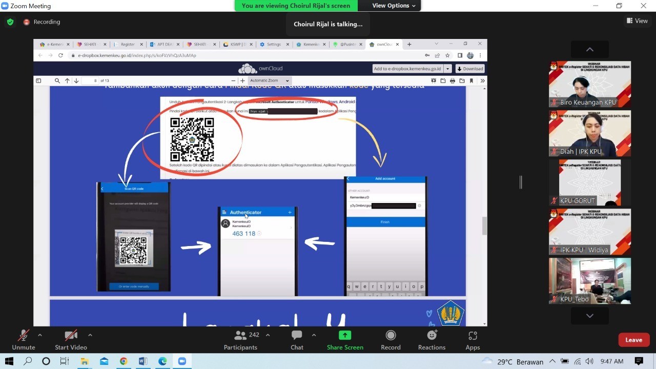 Pada Hari Selasa (30/08/2022) KPU Kota Malang mengikuti kegiatan Bimtek SEHATI dan Rekonsiliasi Data Hibah Non Pemilihan Semester I Tahun Anggaran 2022 secara daring yang diselenggarakan oleh KPU RI.