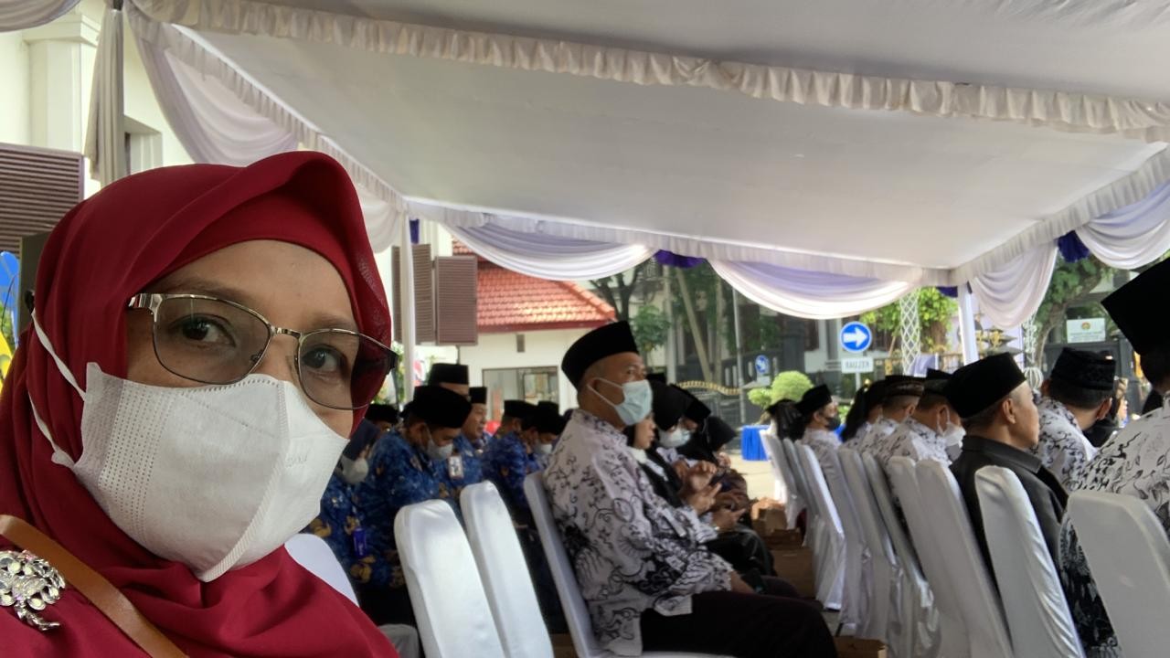 Ketua KPU Kota Malang Aminah Asminingtyas mengikuti kegiatan HUT Ke-51 KORPRI, HUT PGRI Ke-77 dan Hari Guru Nasional Tahun 2022 yang diselenggarakan di Halaman Depan Kantor Walikota Malang Jalan Tugu Nomor 1 Malang.