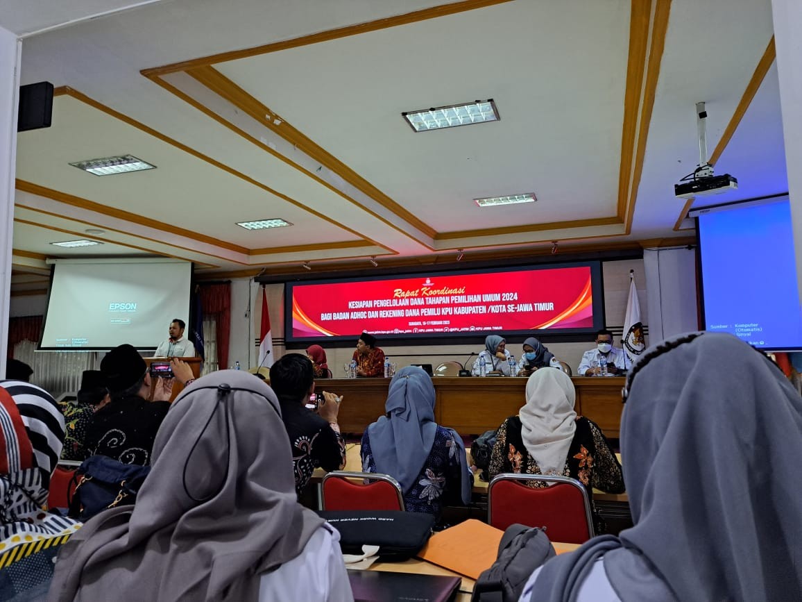 Kegiatan tersebut dihadiri oleh Ketua, Sekretaris, dan Pengelola Keuangan KPU Se- Provinsi Jawa Timur. Acara yang dimulai pada Pukul 16.00 WIB di buka oleh Ketua KPU Provinsi Jawa Timur Choirul Anam. Dalam pembukaannya tersebut Choirul Anam menyampaikan bahwa dalam melaksanakan pekerjaan harus berpedoman pada Tahapan dan Jadwal Pemilu Tahun 2024.