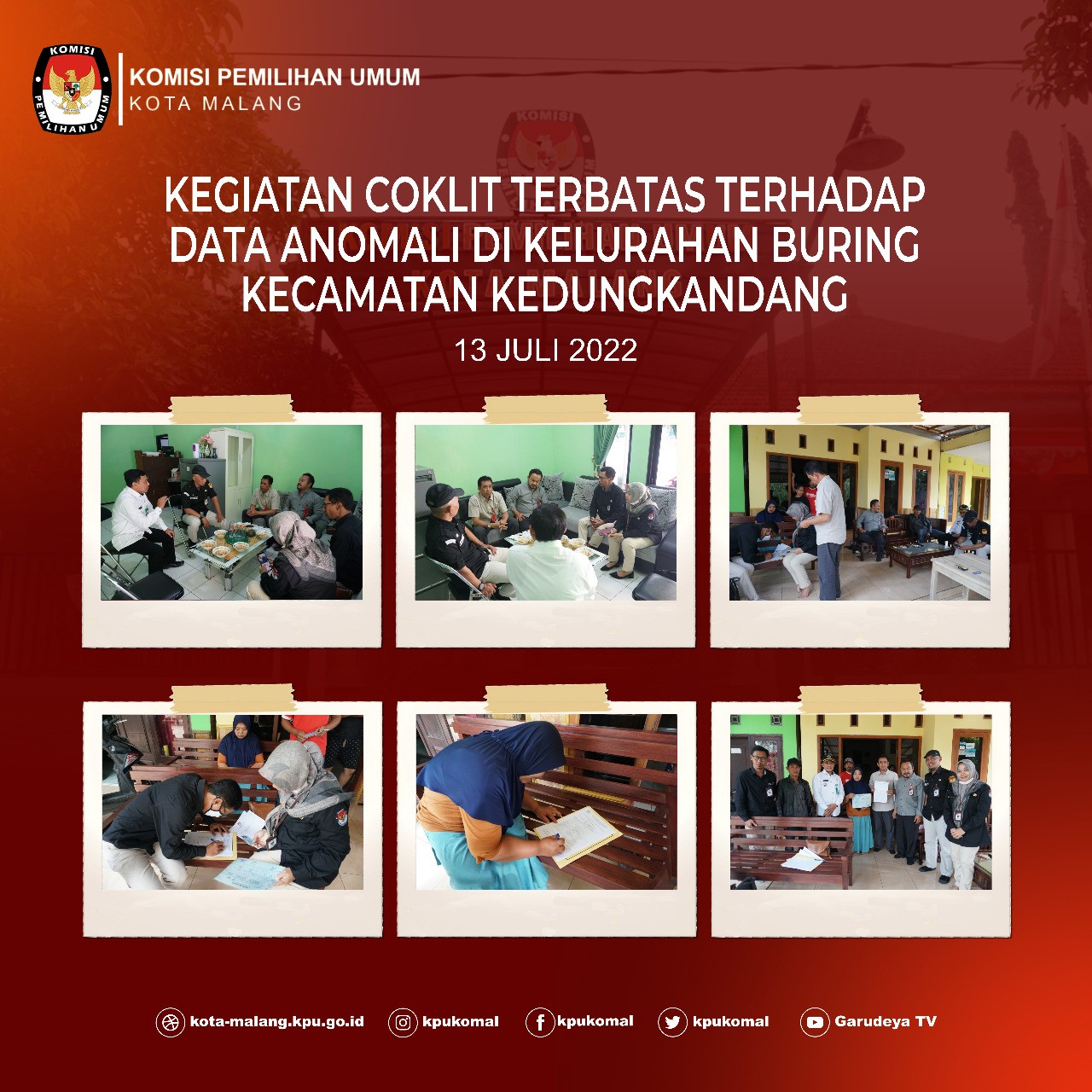 kpu.malangkota.go.id. – Komisi Pemilihan Umum (KPU) Kota Malang, verifikasi faktual (vertual) data pemilih anomali hasil temuan Badan Pengawas Pemilu (Bawaslu) setempat, guna validasi Pemutakhiran Data Pemilih Berkelanjutan (PDPB) Semester II Tahun 2021