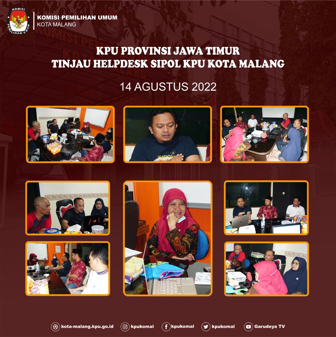 kpu.malangkota.go.id. Komisi Pemilihan Umum (KPU) Kota Mlaang menerima kunjungan Anggota KPU Provinsi Jawa Timur, Nurul Amalia, Minggu (14/08/2022) pada pukul 22.30 WIB. Kunjungan tersebut dilakukan dengan tujuan melakukan monitoring dan evaluasi Helpdesk Pendaftaran Partai Politik Calon Peserta Pemilu Tahun 2024. Sesuai dengan Peraturan KPU No 4 Tahun 2022, tepat pada tanggal 14 Agustus 2022 adalah hari terakhir pendaftaran partai politik calon peserta Pemilu tahun 2024. Nurul mengawali kegiatan monitoring dan evaluasi dengan melakukan pengecekan ruang dan fasilitas helpdesk pendaftaran partai politik, yang kemudian dilanjutkan dengan meminta informasi terkait fasilitasi Helpdesk. “Sampai hari ini sudah berapa Partai Politik Calon Peserta Pemilu Tahun 2024 yang sudah menggunakan fasilitasi Helpdesk di KPU Kota Malang?”ujarnya. Selanjutnya Kasubag Teknis dan Hupmas KPU Kota Malang menyampaikan bahwa sampai pada hari terakhir perdaftaran sudah ada 3 parpol yang menggunakan fasilitasi Helpdesk, yaitu Partai Keadilan Dan Persatuan (PKP), Partai Nasdem, dan Partai Demokrat.