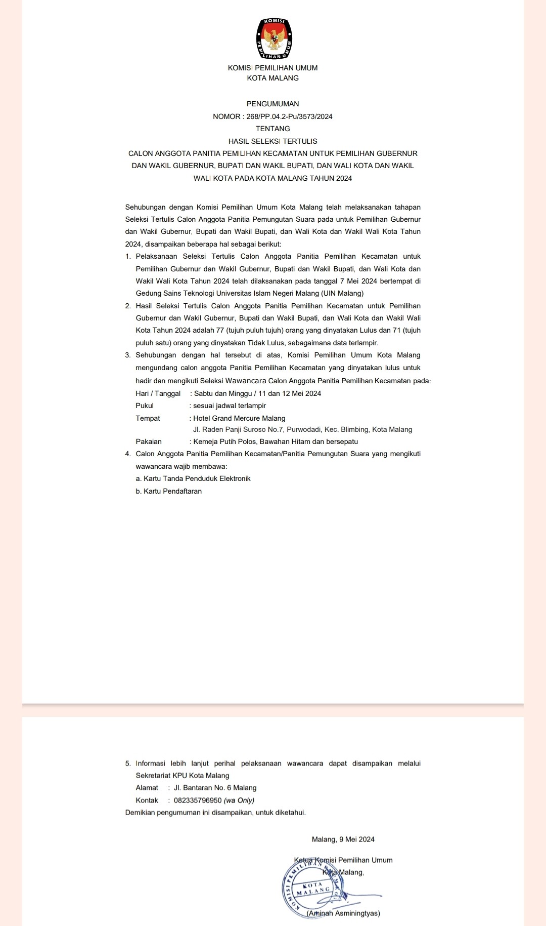 Pengumuman Hasil Seleksi Tertulis PPK PILKADA 2024