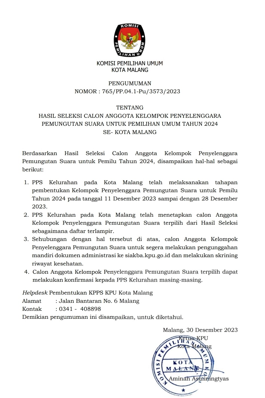 Berikut ini pengumuman penetapan KPPS Pemilu 2024