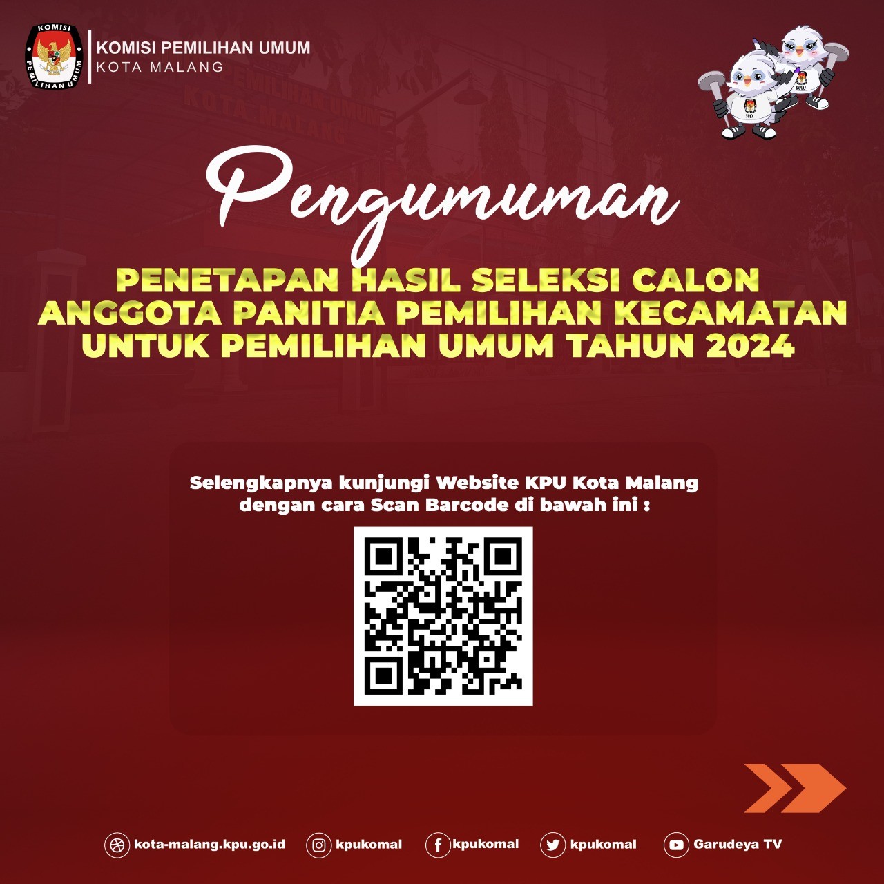 Pengumuman Penetapan Hasil Seleksi PPK Pemilu Tahun 2024 dapat di unduh dalam tautan berikut :