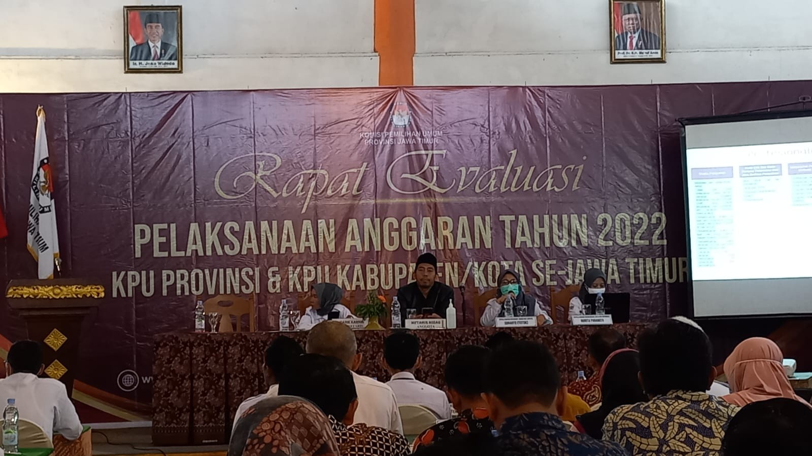 Evaluasi pelaksanaan anggaran tahun 2022 KPU Provinsi dan Kabupaten/Kota sejawatimur. Di ketiga mem
