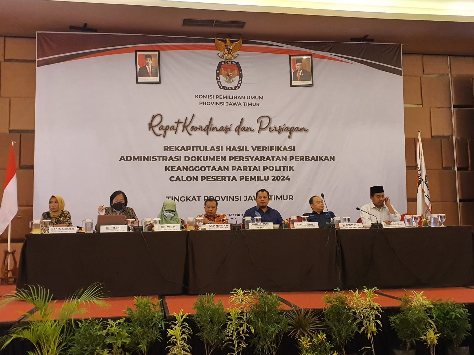 Kota Madiun, KPU Kota Malang- KPU Provinsi Jawa Timur menggelar Rapat Koordinasi dan Persiapan Rekapitulasi Hasil Verifikasi Administrasi Dokumen Persyaratan Perbaikan Keanggotaan Partai Politik Calon Peserta Pemilu 2024, yang diselenggarakan di Kota Madiun. Kegiatan yang dilaksanakan pada tanggal 11-12 Oktober 2022.