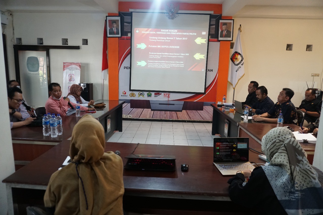 Kemudian dilanjutkan dengan sosialisasi terkait bimbingan teknis Peraturan KPU Nomor 4 Tahun 2022 Tentang Pendaftaran, verifikasi, dan penetapan partai politik yang disampaikan oleh ketua Divisi Teknis Penyelenggara Pemilu Deny Rachmat Bachtiar, yang dilanjutkan dengan pengenalan sistem informasi partai politik (sipol), yang disampaikan oleh Kasubag Teknis dan Hupmas Hendrian Haswara Bayu.