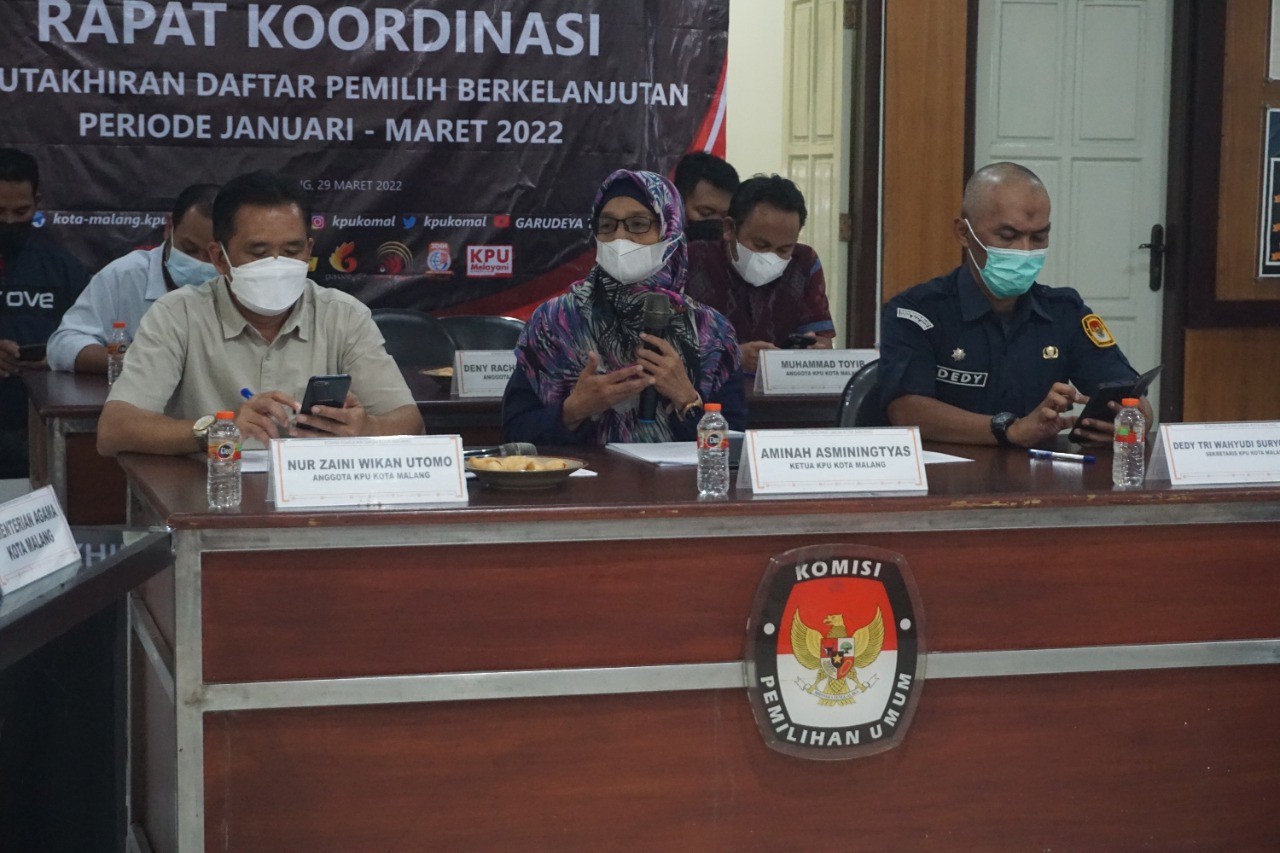 Malang – Selasa (29/03/2022) bertempat di Kantor KPU Kota Malang Jalan Bantara No.6 pukul 13.00 WIB, KPU Kota Malang Melaksanakan Rapat Koordinasi Pemutakhiran Daftar Pemilih Berkelanjutan Tahun 2022 di Tingkat Kota Malang. Ketua KPU Kota Malang Aminah Asminigtyas menyatakan bahwa saat ini KPU sedang melakukan Penyusunan Daftar Pemilih Berkelanjutan Berdasarkan ketentuan Peraturan Komisi Pemilihan Umum Nomor 6 Tahun 2021 tanggal 11 November 2021.