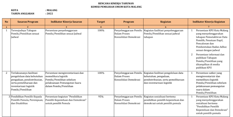 Rencana Kerja (RENJA) KPU Kota Malang Tahun 2022