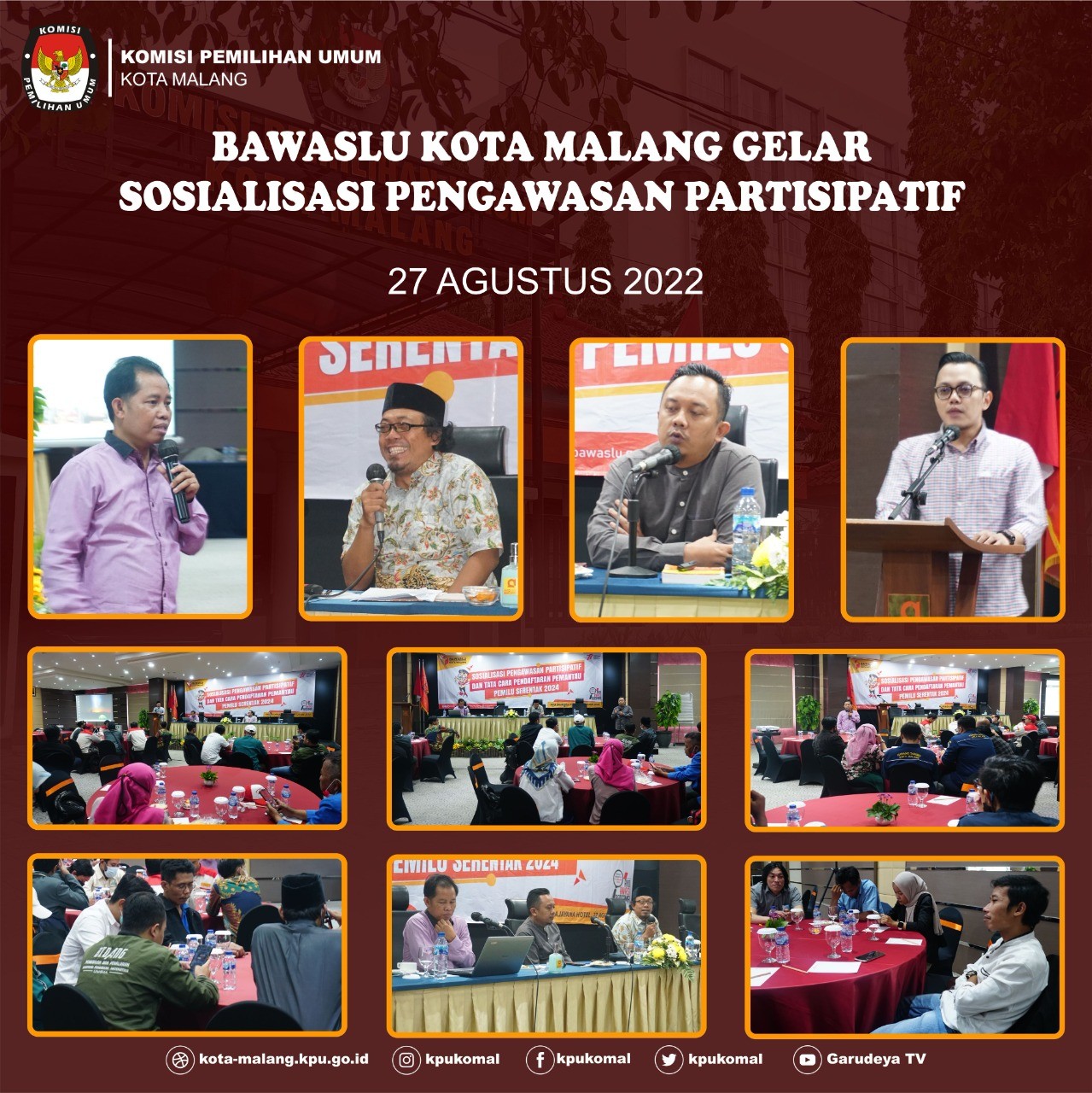 kpu.malangkota.go.id. Pada Hari Sabtu Tanggal 27 Agustus 2022, KPU Kota Malang menghadiri Acara Diskudi tentang Pengawasan Partisipatif. Kegiatan tersebut diselenggarakan oleh Bawaslu Kota Malang di Hotel Aria Gajayana Pukul 13.00 WIB.