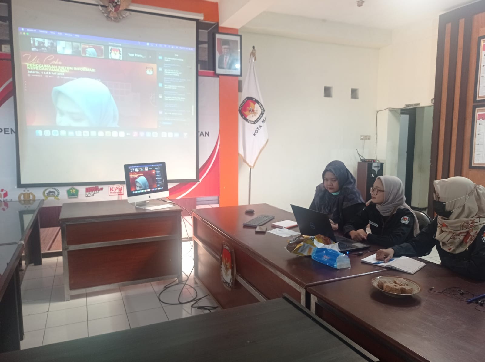 kpu.malangkota.go.id. – Komisi Pemilihan Umum (KPU) Kota Malang mengikuti kegiatan uji coba penggunaan aplikasi Sistem Informasi Kepegawaian (SIMPEG) secara virtual menggunakan media Aplikasi Zoom Meeting.(14/7/2022)