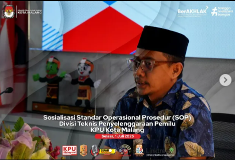 KPU Kota Malang gelar Sosialisasi SOP Divisi Teknis Penyelenggara (Selasa,01/07/2025), bertempat di aula KPU Kota Malang. Kegiatan ini dilaksanakan berdasarkan ketentuan PermenPAN RB Nomor 35 Tahun 2012 Tentang Pedoman Penyusunan SOP Administrasi Pemerintahan. Pelaksanaan pembentukan SOP, merupakan salah satu tujuan kebijakan Reformasi Birokrasi dalam hal perubahan ketatalaksanaan.Hadir sebagai narasumber dalam kegiatan ini Divisi Teknis Penyelenggara Ali Akbar dan Kepala Sub Bagian Teknis Penyelenggaraan Pemilu dan Hukum Hendrian Haswara.