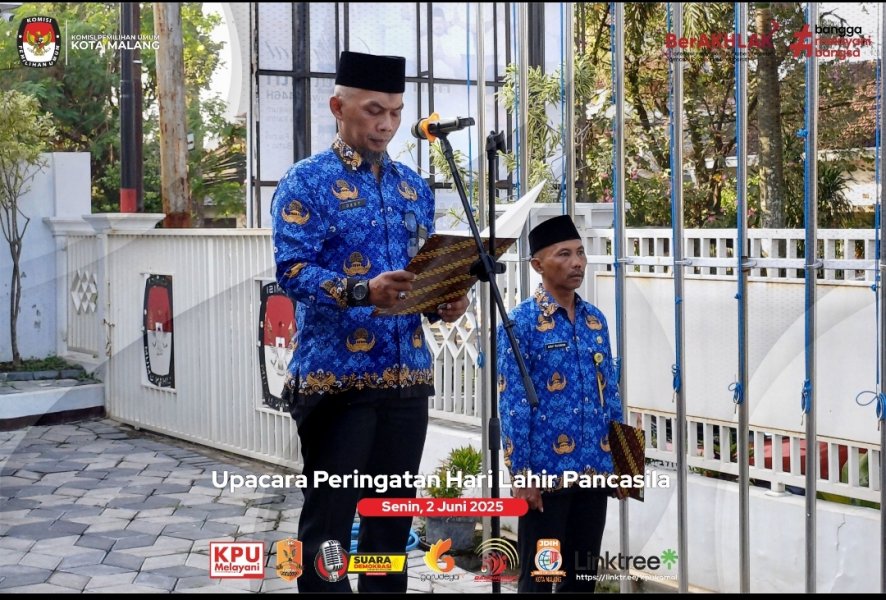 KOTA MALANG, kota-malang.kpu.go.id - Bertempat dihalaman kantor Komisi Pemilihan Umum Kota Malang telah dilaksanakan Upacara Peringatan Hari Lahir Pancasila pada Senin (02/06/2025) yang dipimpin oleh Komandan Upacara Kepala Sub Bagian Perencanaan, Data dan Informasi - Yekti Wijayanti dengan Inspektur Upacara Sekretaris KPU Kota Malang - Dedy Tri Wahyudi Suryo Putro.